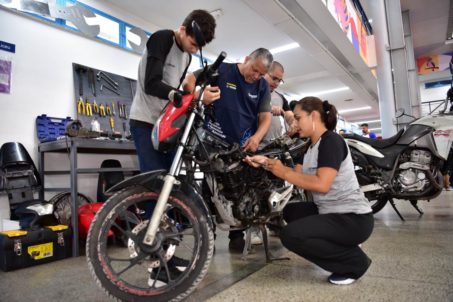 No interior, a rede avançou de quatro para sete unidades próprias, com novas estruturas em Parintins, Silves e Benjamin Constant, equipadas com laboratórios de informática, mecânica, estética e gastronomia que simulam ambientes reais de trabalho.